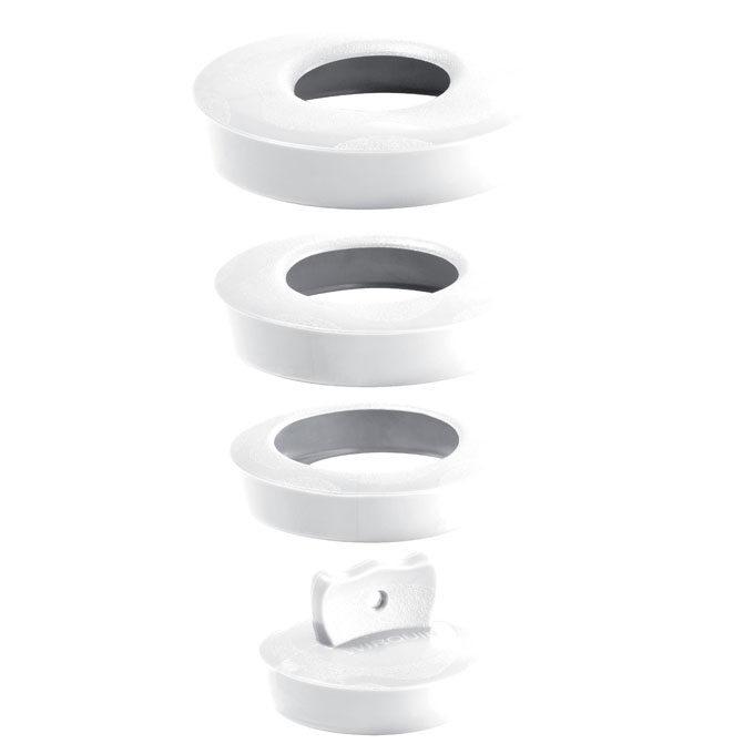 Il tappo è fornito con 3 anelli che si sovrappongono. In base alle dimensioni della griglia (diametro superiore compreso tra 36 e 58 mm), si dovrà antenere o rimuovere uno o più anelli.