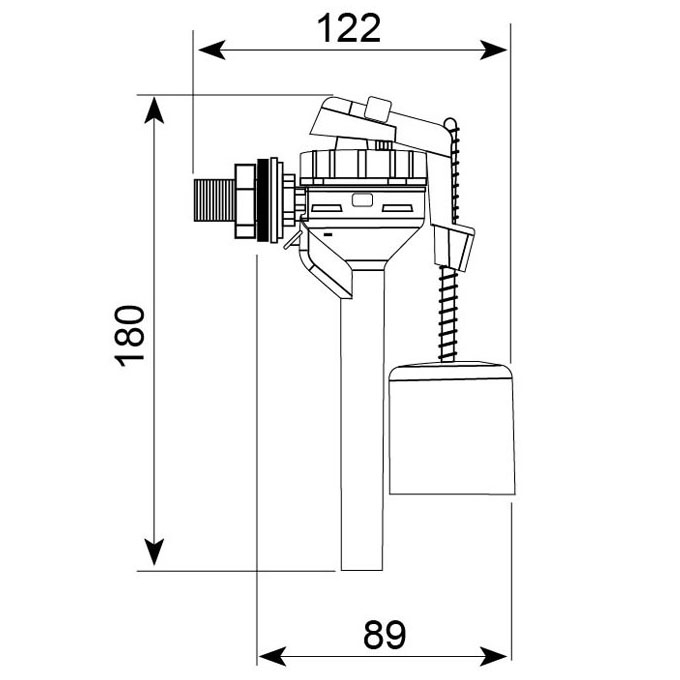 Quando viene azionato lo sciacquone:1 - Il galleggiante si sposta lungo il corpo del rubinetto.